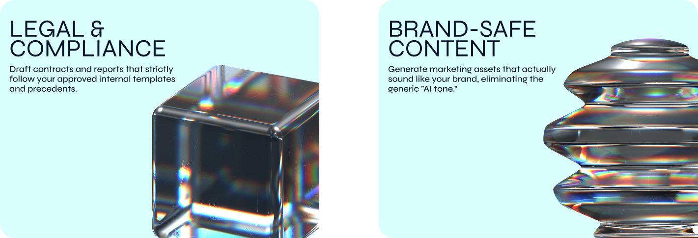 Off-the-shelf AI doesn’t know your brand, your rules, or your secrets. We build and fine-tune private AI models using your data. This ensures every output follows your exact standards, tone, and compliance requirements.